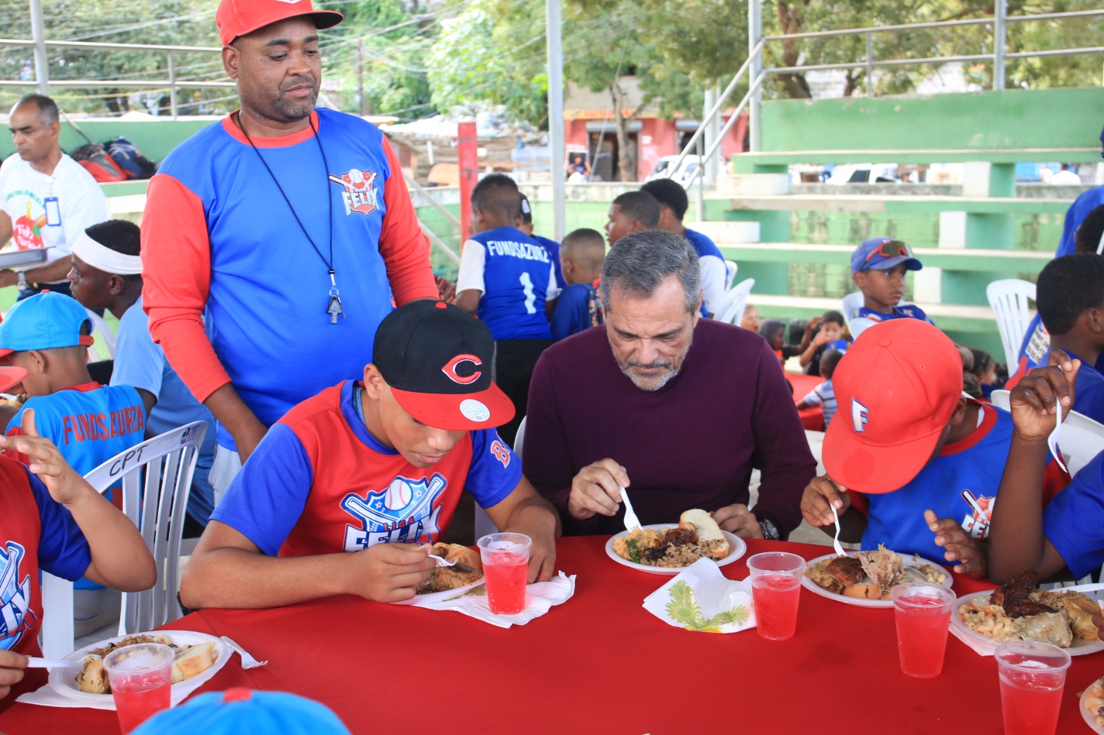 Durante el compartir, Noboa se sentó en varias de las mesas para compartir los alimentos con los infantes, a quienes exhortó a continuar su formación en el béisbol, sin descuidar su educación académica, resaltando que los estudios constituyen la base fundamental para el desarrollo integral y la formación de ciudadanos de bien.